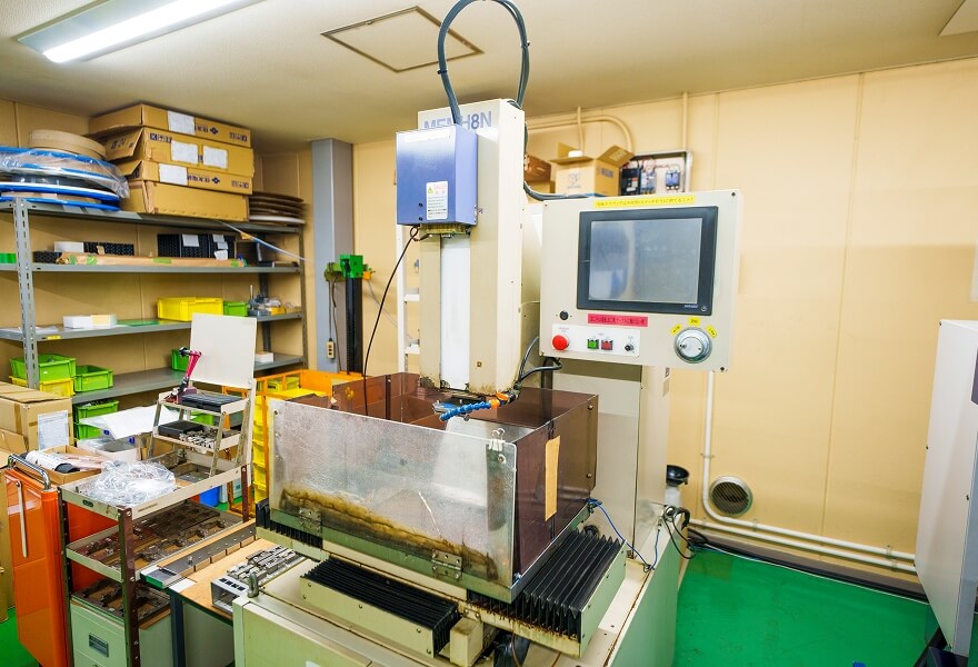 細穴放電加工機は、電気エネルギーを用いて極小径の穴加工を行う設備です。
