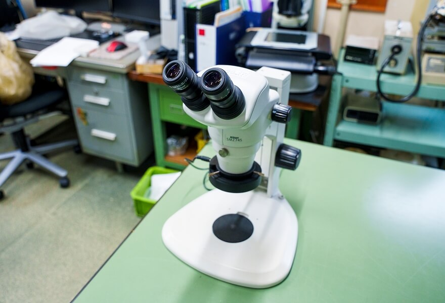 光学顕微鏡は、微細加工部や金型部品の状態を高倍率で観察する検査設備です。